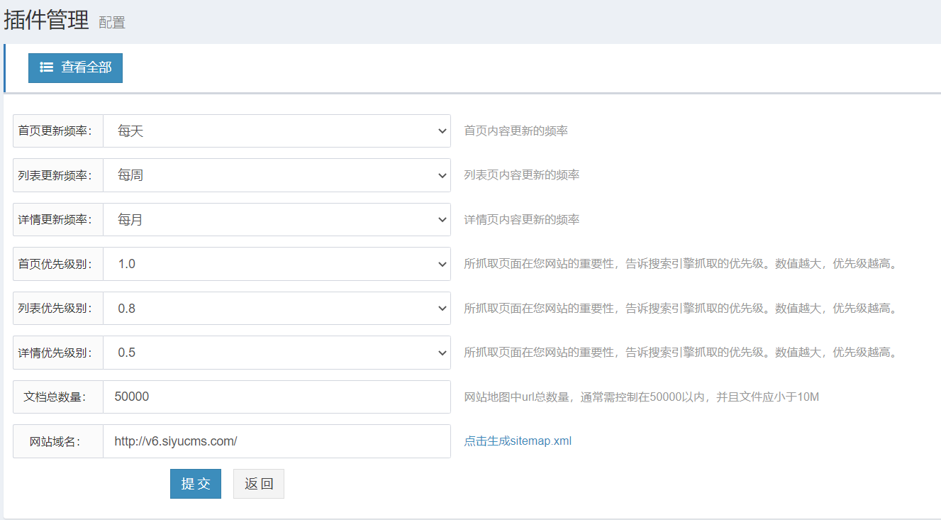 1、配置提示權(quán)限不足請修改addons/sitemap目錄可寫權(quán)限