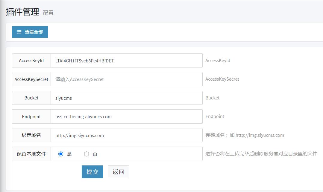 阿里云是優秀的第三方云存儲提供商,通過此插件可以將SIYUCMS的上傳資源部署(中轉)到阿里云OSS。